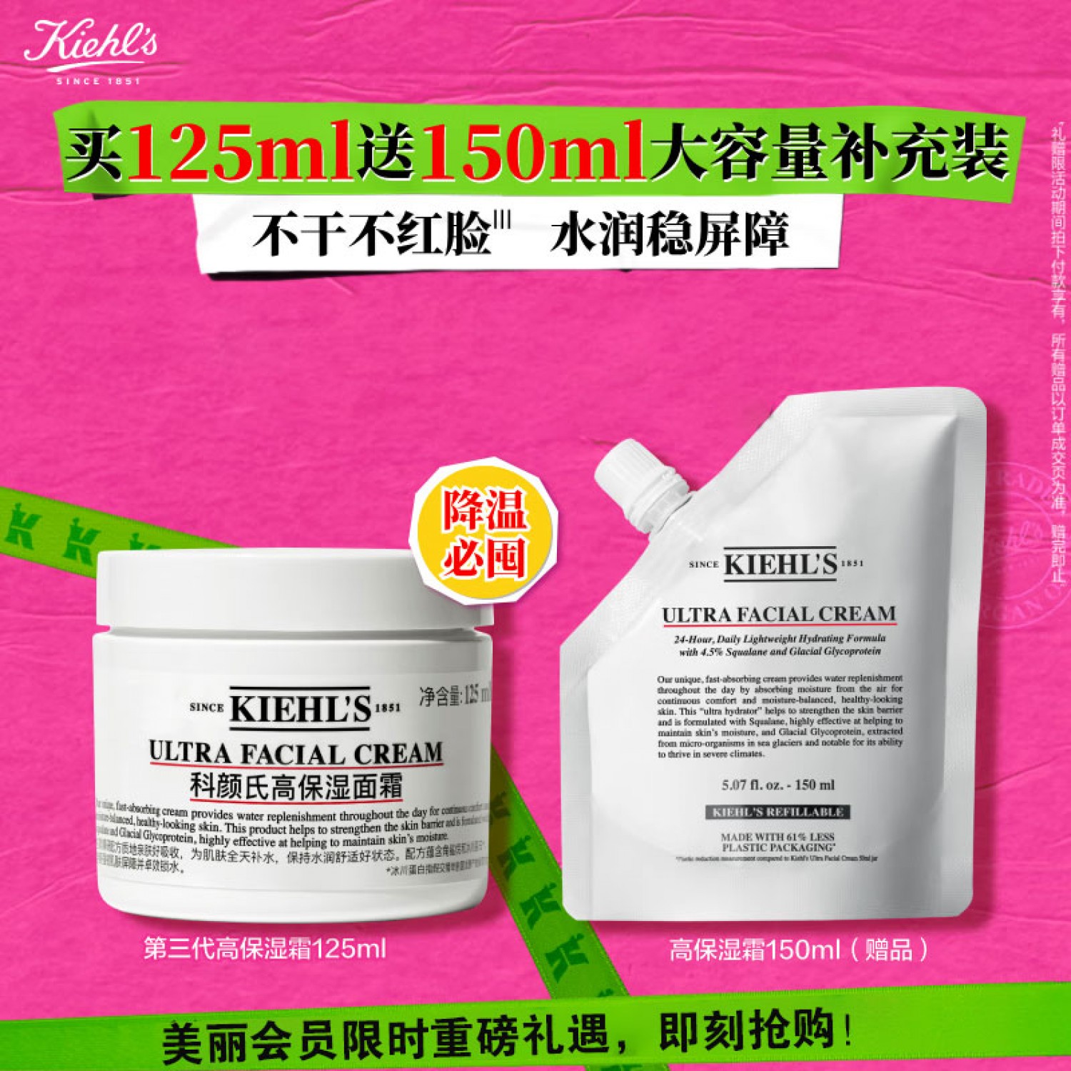 科颜氏(Kiehl's)全新第三代高保湿面霜125ml+150ml补充装套装