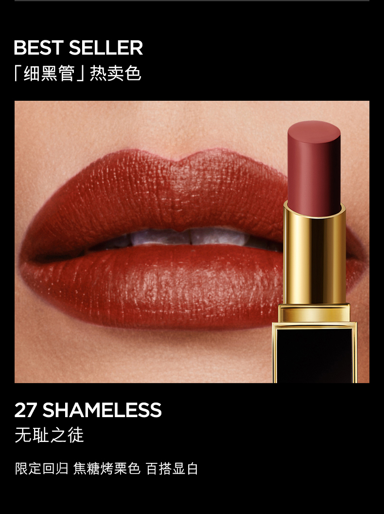TOM FORD唇膏TF口红滋润细黑管26 27 16正红色暖橘正品