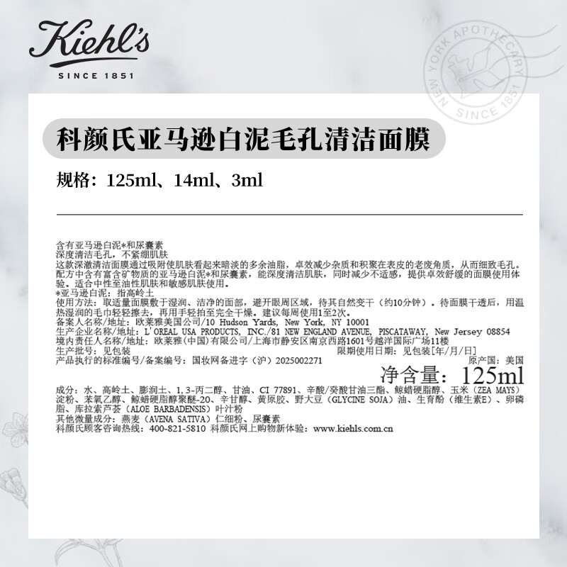 商品名称:【满减活动】科颜氏第二代白泥清洁面膜涂抹泥膜去黑头收毛孔125ml