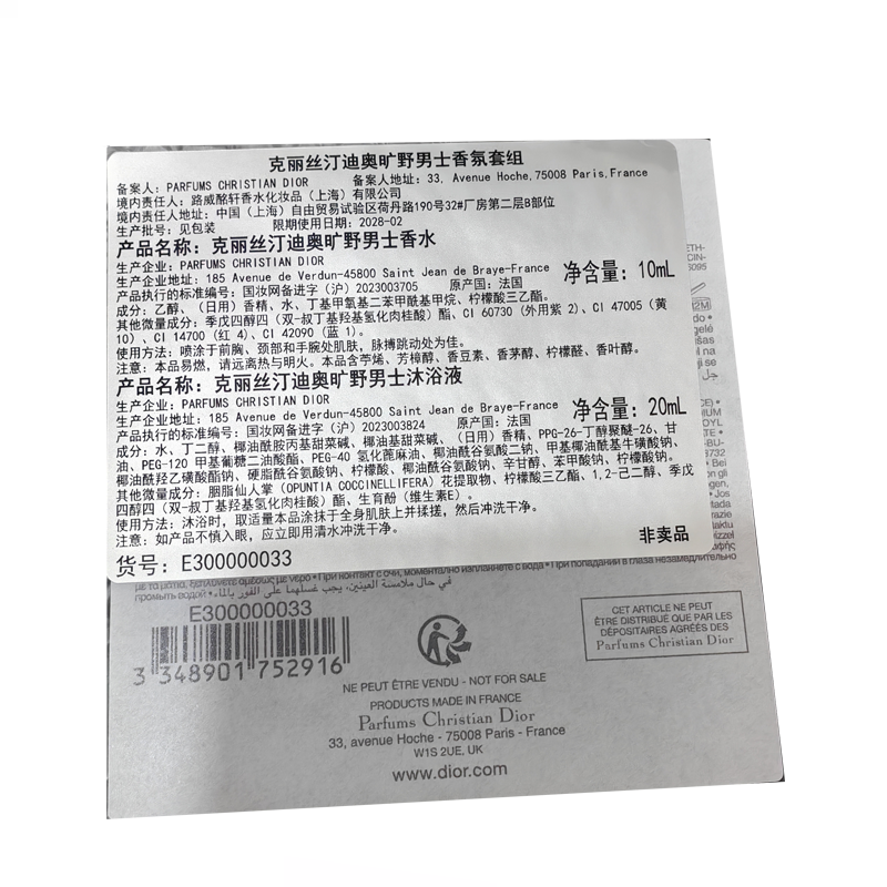 商品名称:Dior/迪奥迪奥旷野男士香氛套组香水10ml+沐浴露20ml