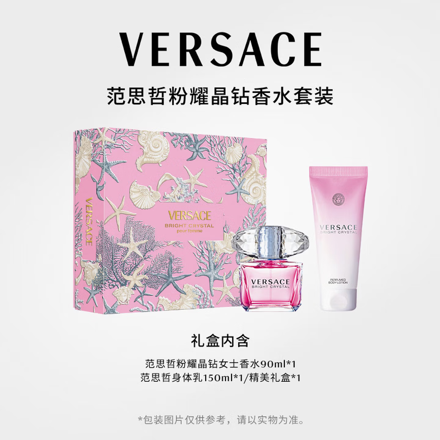 商品名称:VERSACE范思哲粉耀晶钻香水香氛套装90ml+身体乳150ml